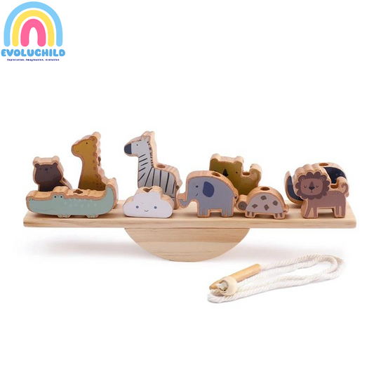 Jeux de perles & d'équilibre en bois Montessori avec blocs animaux pour enfants