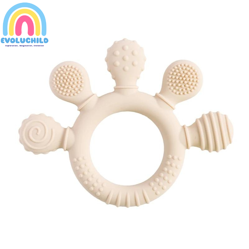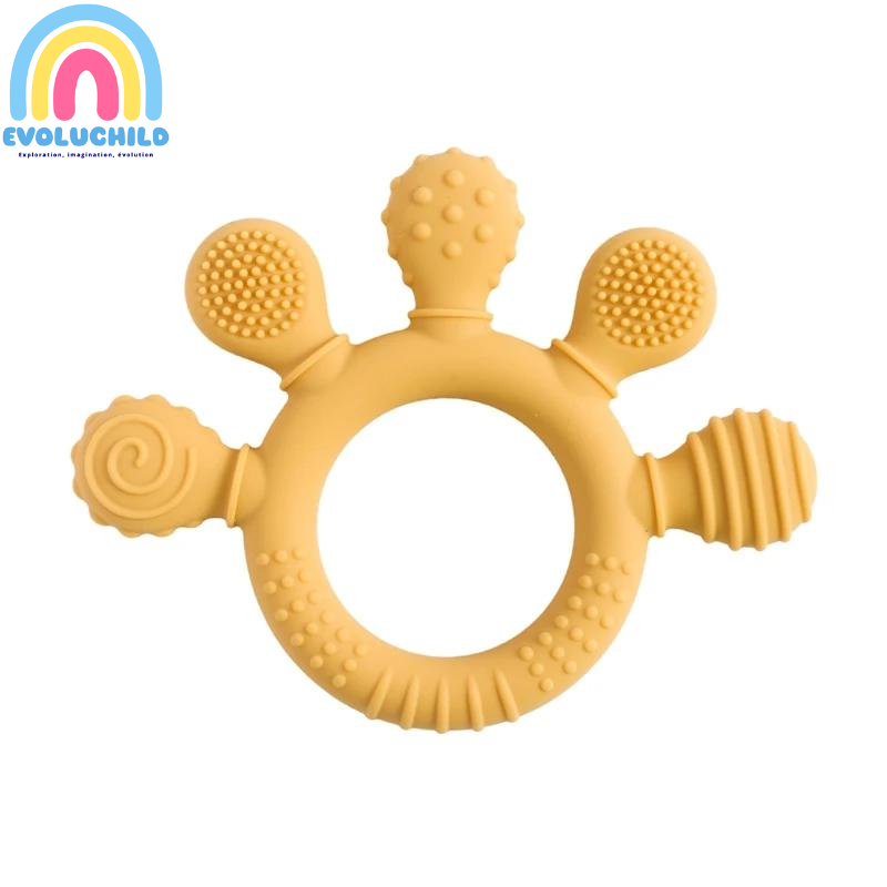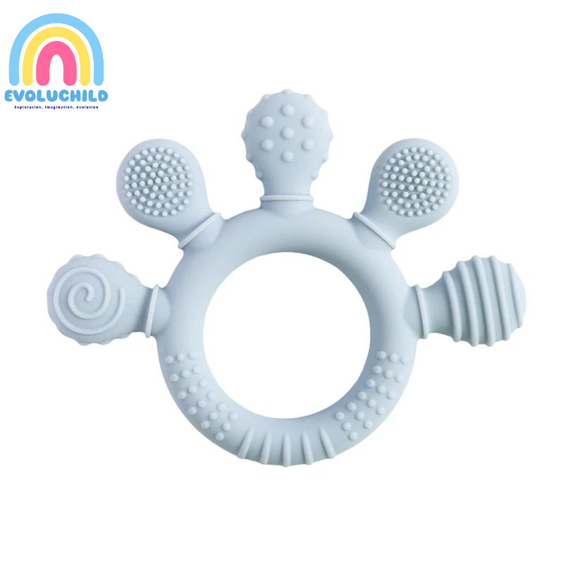 - Soulagement des Douleurs Gingivales : L'anneau aide à apaiser les douleurs de dentition tout en offrant une texture agréable pour mâcher.