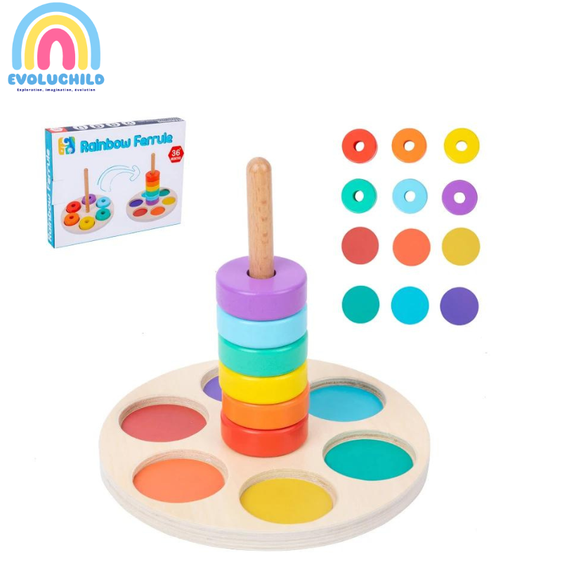 Give your child an educational and fun toy with rainbow stacking rings. Order now on Evoluchild.com and make learning child's play!