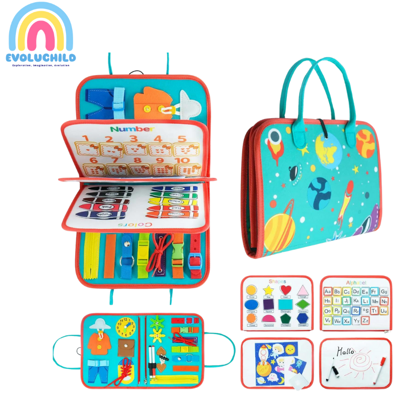 Conçue pour capter l’attention et stimuler le cerveau en construction de votre enfant, la Busy Board Evoluchild est bien plus qu’un simple jouet. Elle canalise l’énergie des petits curieux tout en développant leur motricité fine, leur coordination et leur concentration, à travers des gestes simples et des activités réalistes.