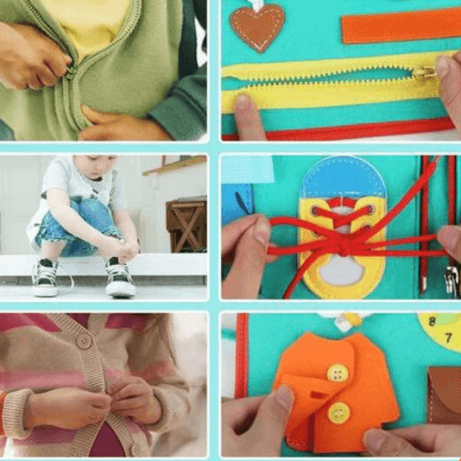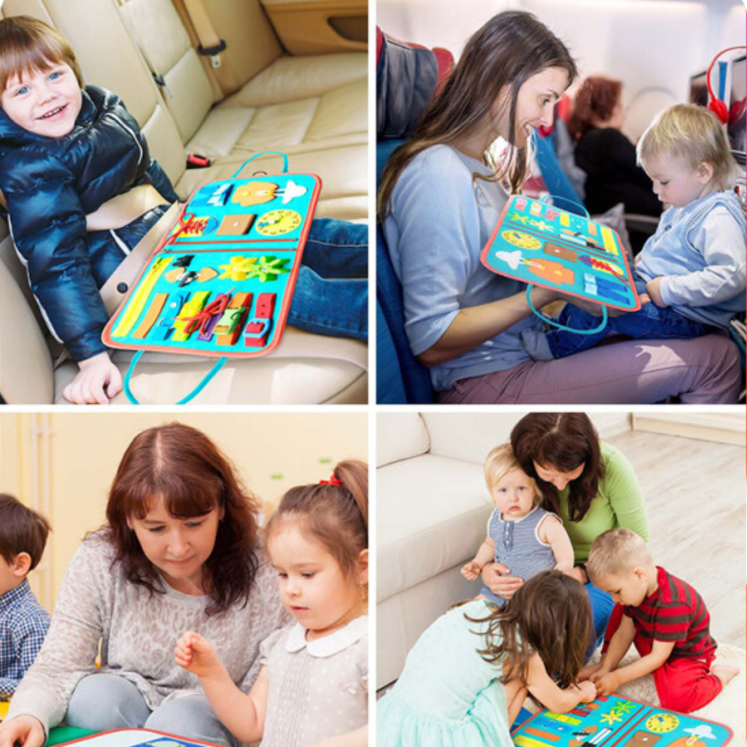 - Stimulation cognitive & sensorielle : textures, fermetures, formes, couleurs, boucles, lacets… chaque manipulation active une zone du cerveau différente.